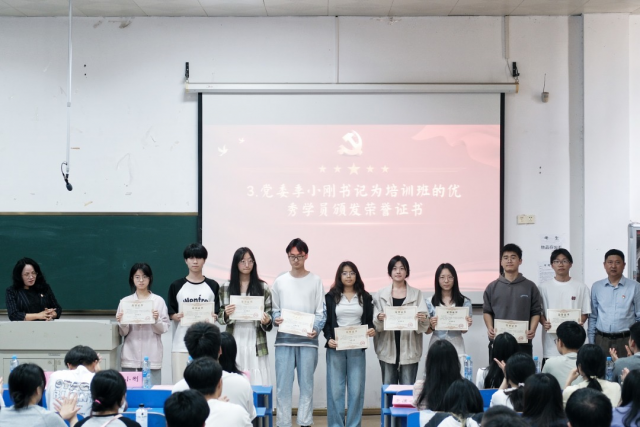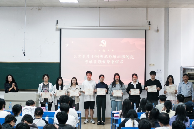 2025年4月29日12:30,麻豆av 于麦庐麻豆av生活动中心D101举行分党校第二十四期入党积极分子培训班结业典礼。出席典礼的有麻豆av 党委书记季小刚同志、党委副书记匡琳同志、学工办主任兼本科生第二党支部书记钟英娥同志、本科生第五党支部书记陶丽同志、本科生第三党支部书记陈菲同志、本科生第一党支部书记邹璐同志。典礼由匡琳同志主持。
