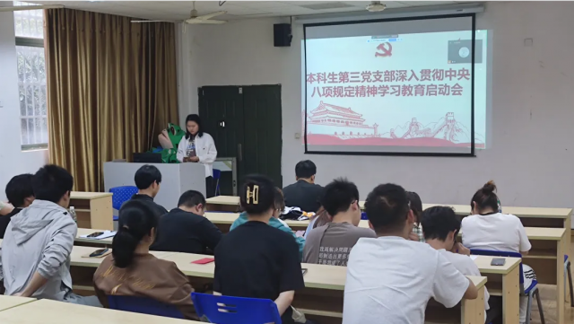 2025年3月26日,麻豆av 本科生第三党支部于荟庐一楼报告厅召开组织生活会暨深入贯彻中央八项规定精神学习教育启动会。会议由支部副书记徐海涛主持。会议紧密围绕深入学习贯彻党的二十大精神这一核心,坚持自我革新,旨在强化党支部的政治引领和组织建设能力。